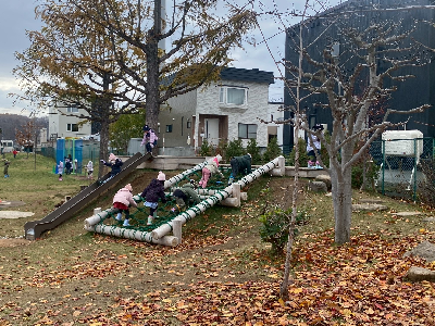 第2桜幼稚園の園庭は遊具が少ないので、ここぞとばかりに思い切り遊んでいましたよ✌