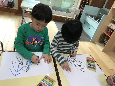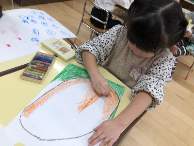自分の思いを言葉にしたり、頭の中のものを描いてみたり…難しそうな活動ではありましたがどの子も活き活きと描いている姿がありました。
