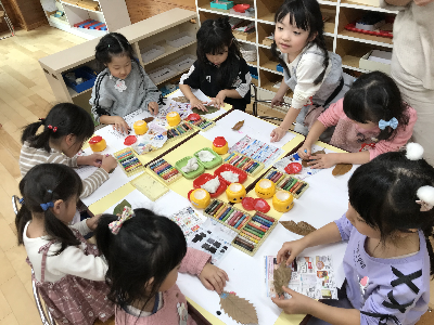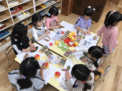 ポプラさんは葉っぱを見立てて絵にする絵画の活動に挑戦!