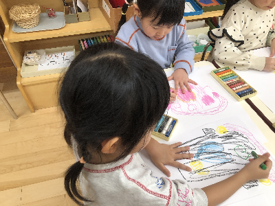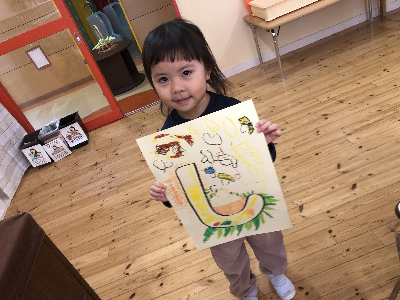 今は保育室に飾られており、自信たっぷりに絵を見せてくれる姿が沢山ありました。