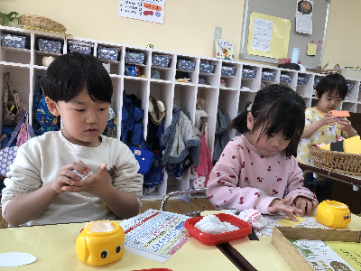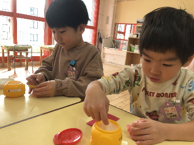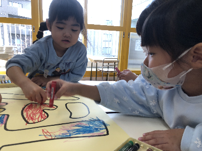 自分の好きな遊びを気の向くままに満足いくまで行う姿ももちろんいっぱい見られる幼稚園ですが、「友達と一緒がいい」そんな気持ちがひとりひとりに芽生えてきているようにも見えています。