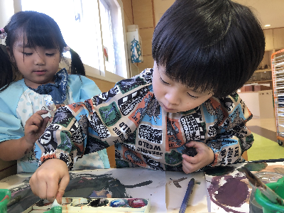 絵を描いたり、パンを削ったりと、夢中になって遊ぶ子どもたちの姿が見られています。