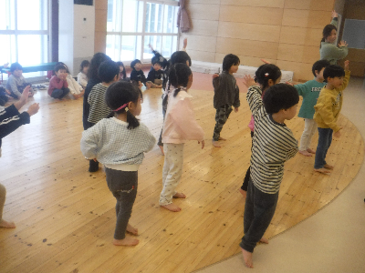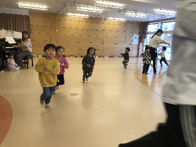 今日はうさぎ1と、どんぐり1で一緒にリズム運動を行いました。