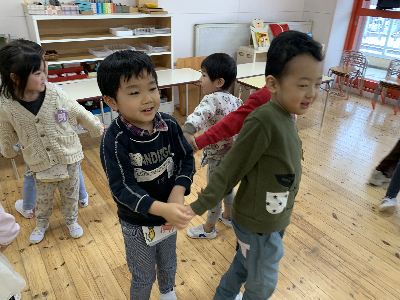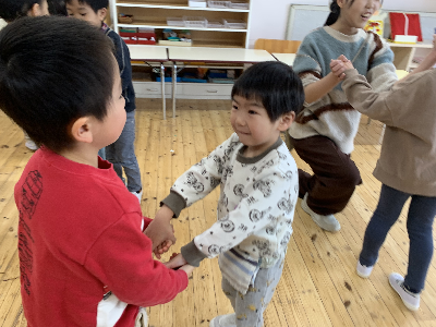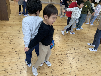 友達とたくさんスキンシップを行う遊びを中心に行いました!