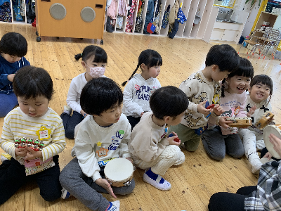リズム運動、楽器遊び、お店屋さんごっこ…それぞれが楽しんでいた今日のグループの様子をお伝えします!