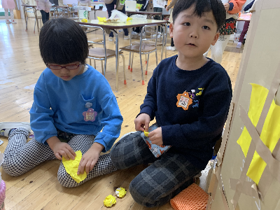 ポプラ3はお店屋さんごっこの準備を行いました。