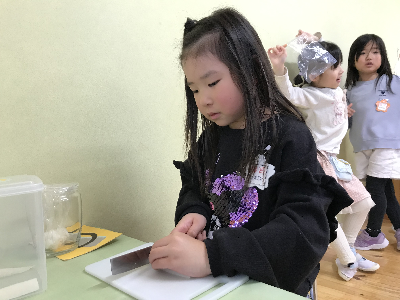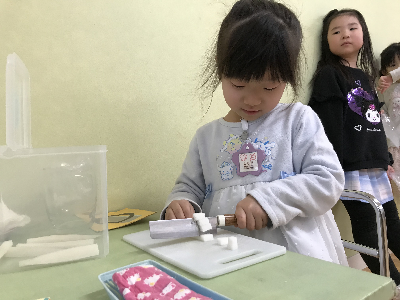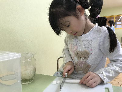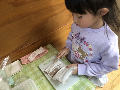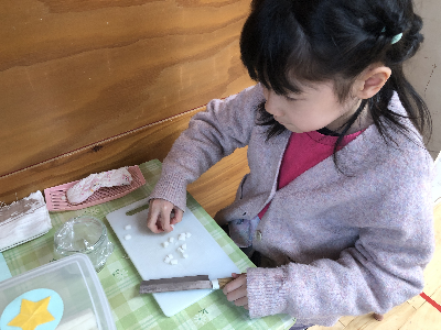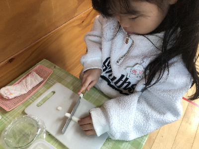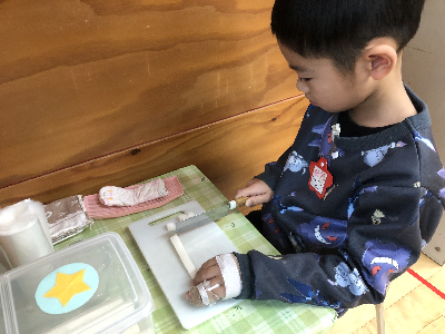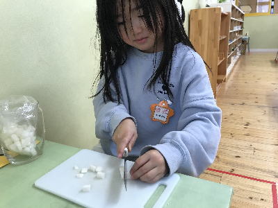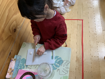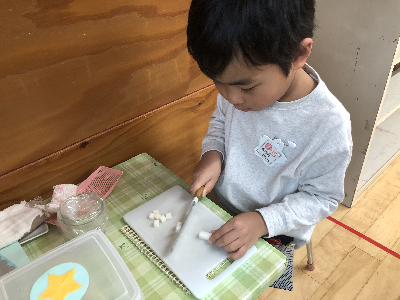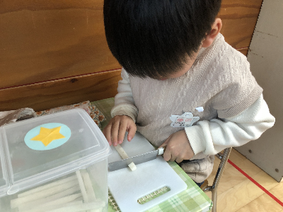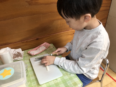 モンテッソーリ教育は本物を使う事に大きな意味を持っているので、包丁も本物。
