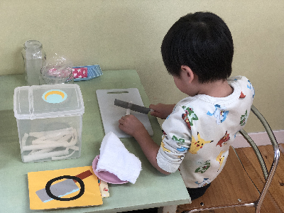 今日は包丁で切る活動やハサミを使った活動、クリスマス制作などが人気でした♪