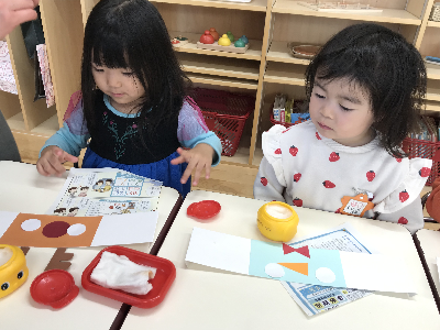 ゆうか先生の手作り鍵盤もよーく見て、真似して頑張っていました♪