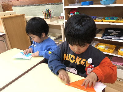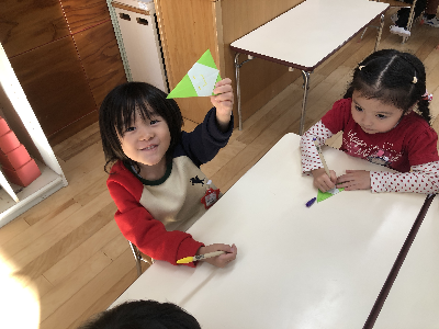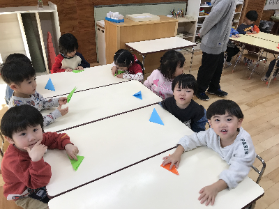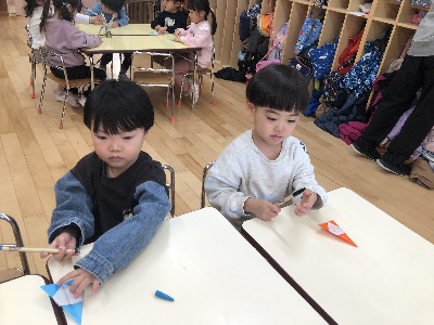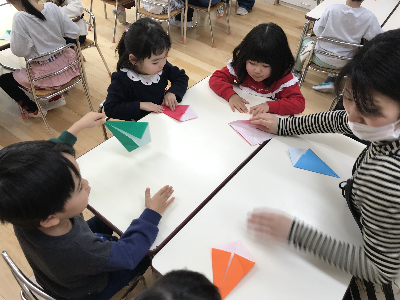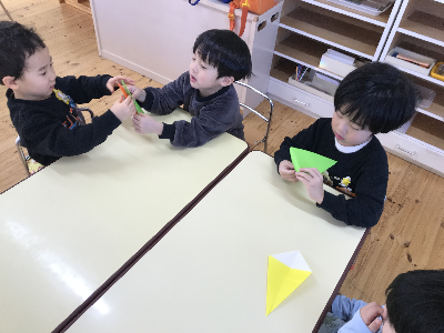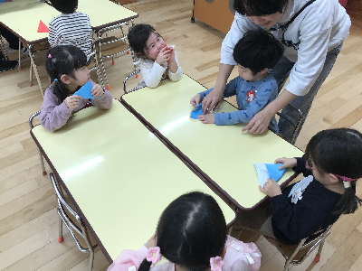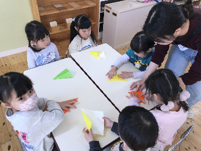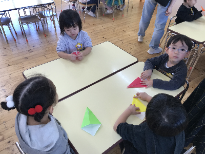 なかには折り紙にあまり触れない友達もいるので、こういった一斉活動で折り紙に触れてくれる事は経験としてとても大事!