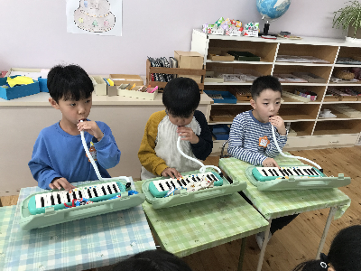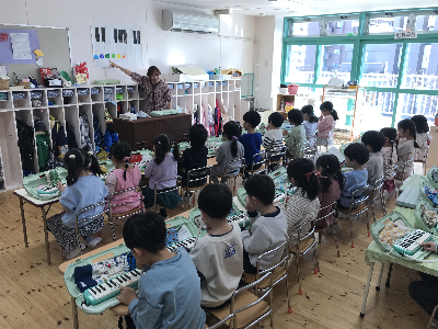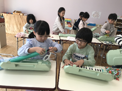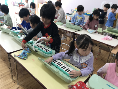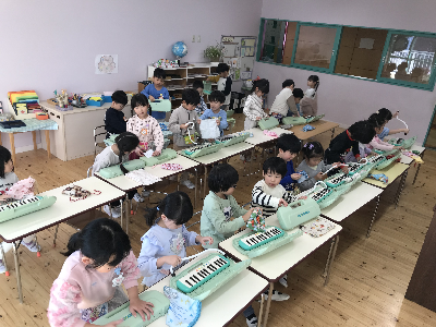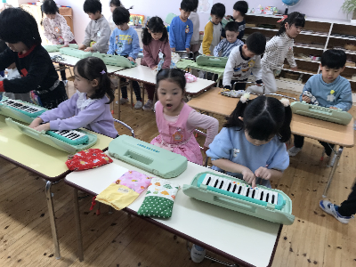 こういった園での活動が小学校に行ったときに「あの時楽しかった鍵盤ハーモニカだ♪」とのように繋がっていってほしいなと思います(⌒∇⌒)