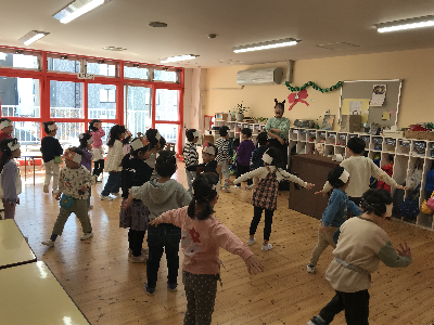 「トナカイさん♪」「サンタさん♪」「雪だるまさん♪」と呼ばれるたびにわーっと動くこどもたち。