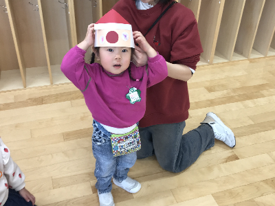 完成してすぐにつけて嬉しそうな子どもたち♪