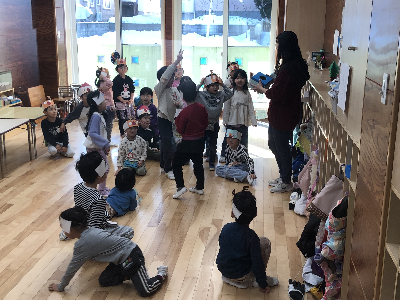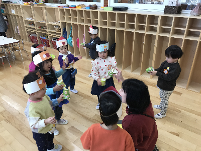 頭に可愛いお面をつけたみんな、とっても嬉しそうで可愛らしかったですよ(⌒∇⌒)