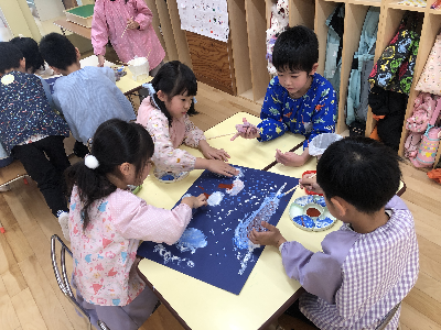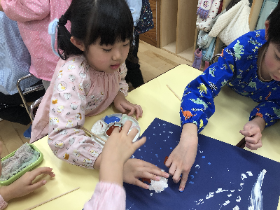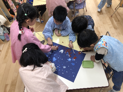 制作前に担当を決め、「僕は雪担当!」「私は木の担当!」と張り切っていましたよ。