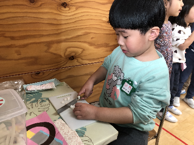 本物を扱っているので心配もあるかと思います、安全第一に子どもたちの「やりたい!」「できた!」を大事に残りの2日間も見ていきます。