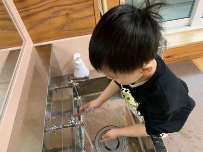 早速、【包丁で切る】の活動の1つ目の工程である手を洗って…