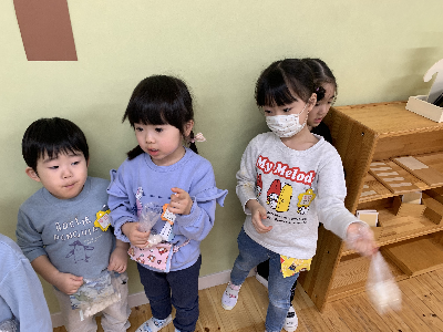 どんぐりさんうさぎさんは年上の友達の活動を見てきたので、紹介の日には「やった~!」と喜ぶ姿が沢山ありましたよ。