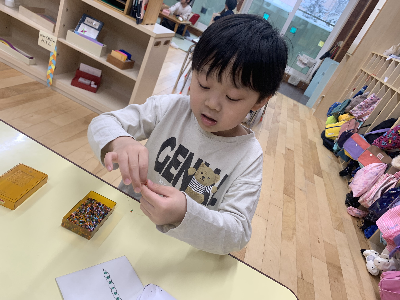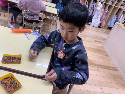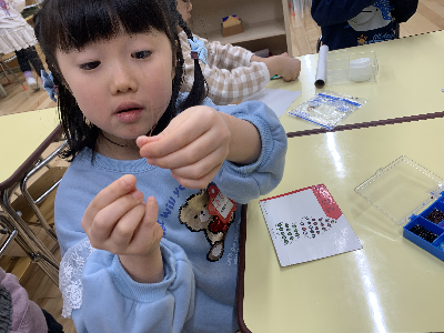郵便ごっこの他にもポプラさんはビーズの活動も盛り上がっています!