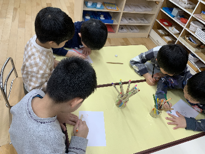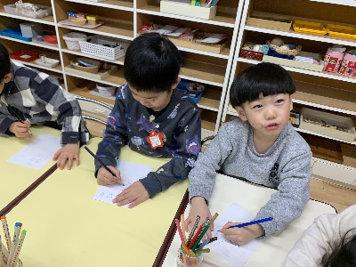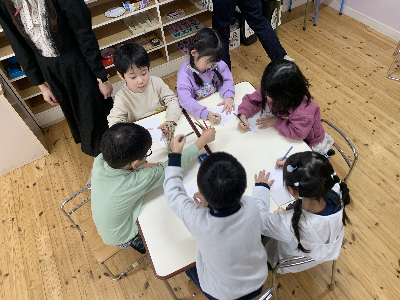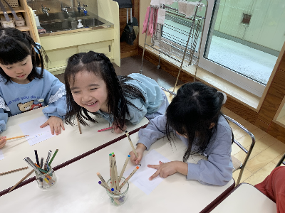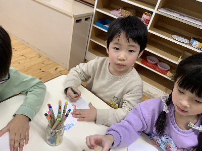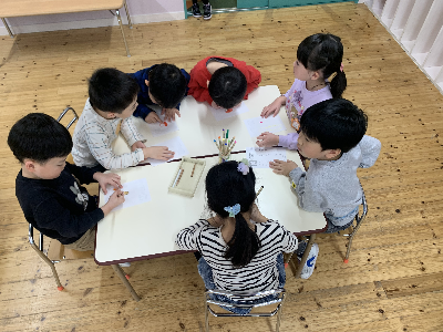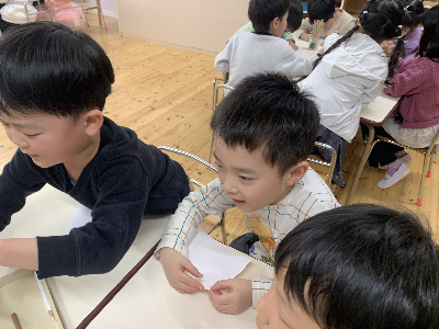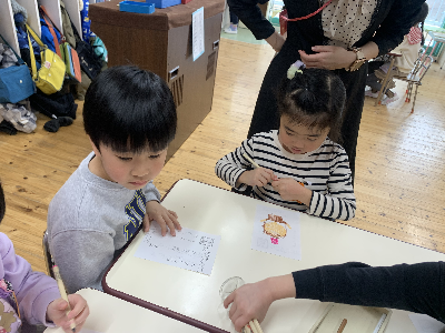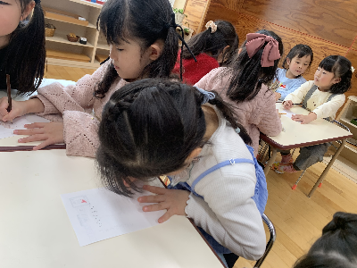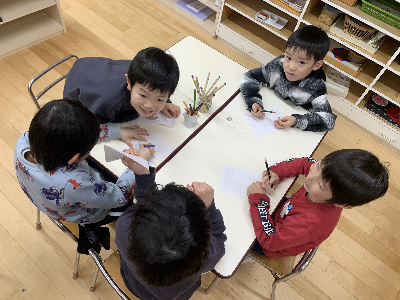 そのあとの自由選択活動の時間には、大好きな友達やいつも遊んでいる友達、他のグループの先生へ手紙を書いている姿もありましたよ!