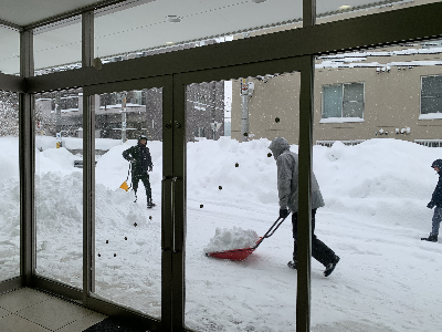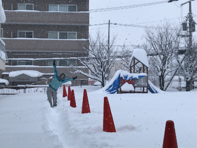 (八木さんは西野から徒歩で下山…橋本さんは北区から時間をかけて出勤していましたが、元バスケ部のパワーで元気に雪かきしていました!)