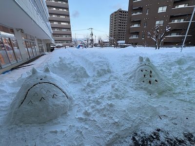 園庭かなり楽しそうなので、安全を確保して遊べるようにしているので、次の登園を楽しみに来てくださいね!今日だけで、すべり台・かまくらなど完成していますよ~!