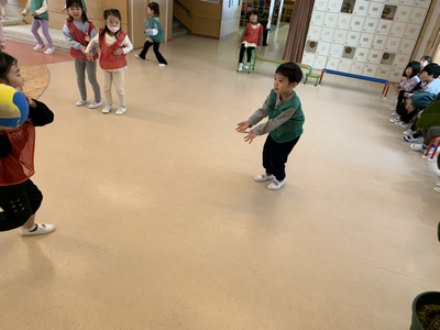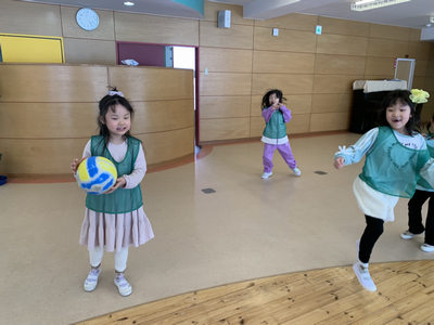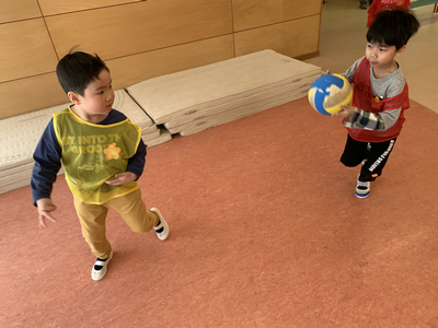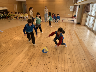 積極的にボールを取りに行く子はもちろん、ドキドキしながらも遠くへ逃げていたり、ボールを触ろうとしてみた子などの姿も見逃さずに前向きな言葉を伝え、“みんなで頑張っているよね”ということを伝え続けています!🍀