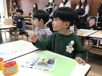 「今日はのりを使って何をつくるのかなぁ?」と先生の話もよく聞くみんな。