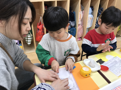 4月の頃はまだまだ他のものが気になったり、友達とお喋りを楽しんでいたり、「座りたくなーい」なんて子もいましたが、この3学期には、それぞれの成長が見られ、もう少しで1つ大きくなるんだなぁと感じる場面が沢山でした。