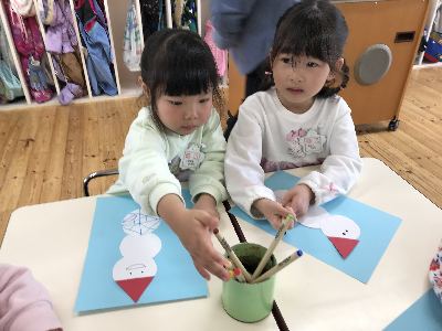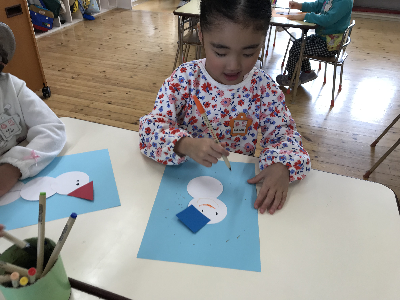 「コロコロ転がってるような雪だるまにする」と考えながら取り組んでいる子もいましたよ♪