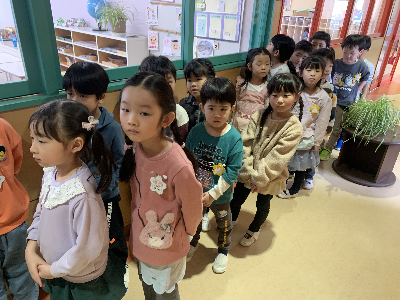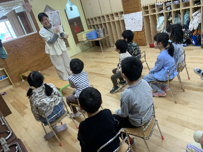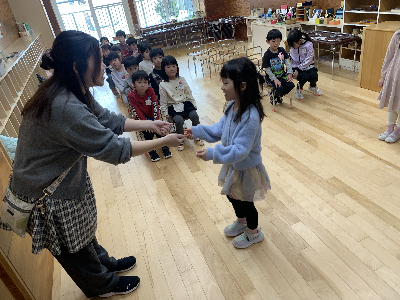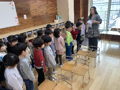 グループ担任の先生に名前を呼ばれて、元気に返事「はい!」。