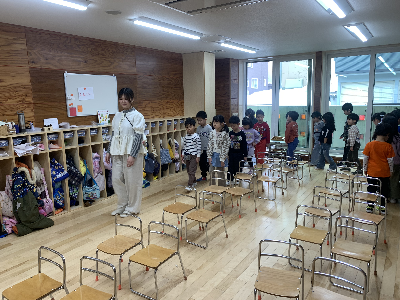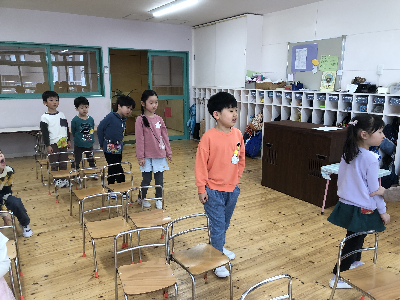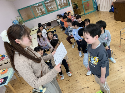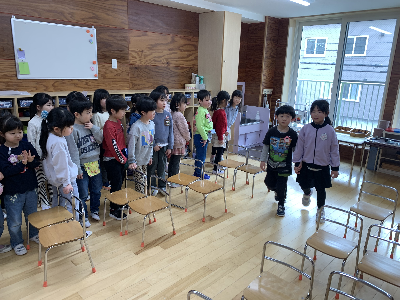 今日は保育室で各グループが入場の仕方、座る場所、証書授与をやってみました(⌒∇⌒)