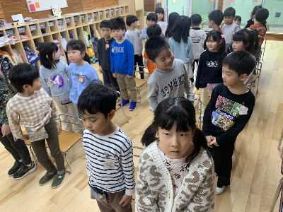 全員揃ってから、司会の先生の「座りましょう」の合図で座ります。