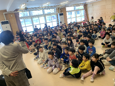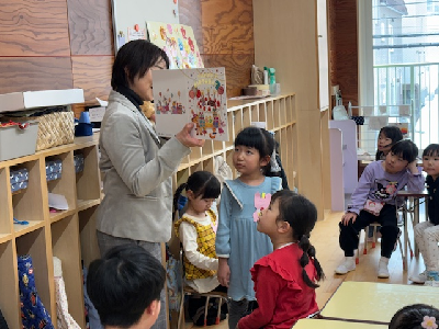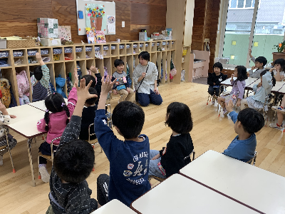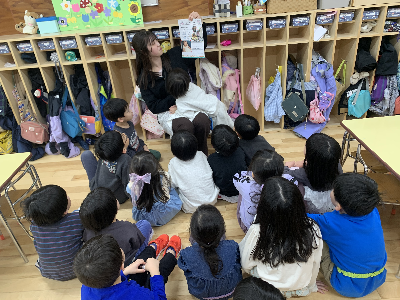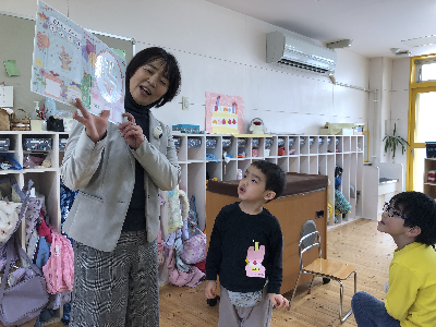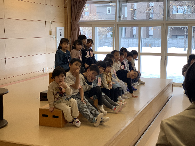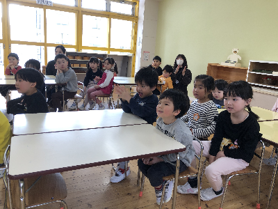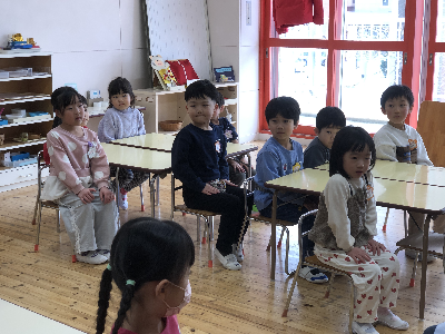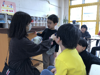 人形を使って、園長先生の穏やかな声に『じ…っ』と耳を傾けていたみんな。
