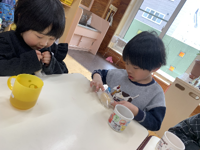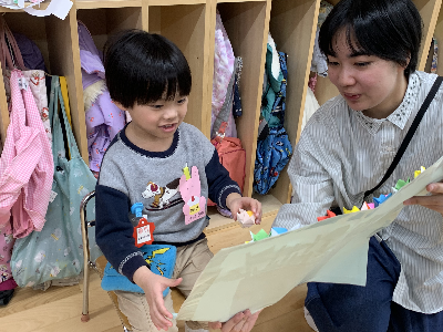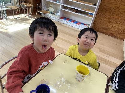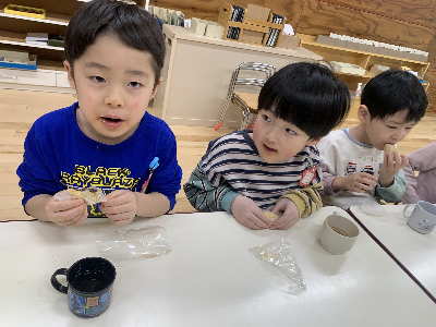 先月の誕生会をお休みした友達も一緒に参加しました♪