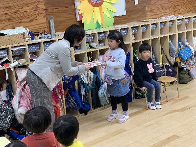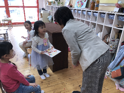 園長先生からもらったら必ずと言っていいほど、嬉しそうにカードを眺めたり、中に貼ってある手形に手を合わせたり…