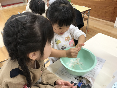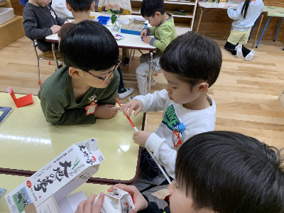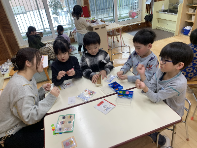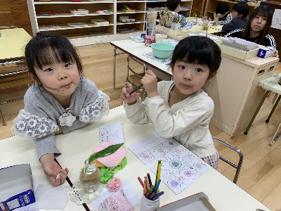 「これができるのもあと少し…!」と友達と見合わせたり、難しい図案に挑戦したりと最後まで頑張る姿が見られています。