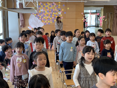 今日お休みのお友達も、本当は来たかった友達も、早退してしまった友達も…そんなみんなの気持ちや保護者の方の気持ちにも心を寄せて卒園式では全員が揃えるように毎日お祈りして過ごしたいと思います。