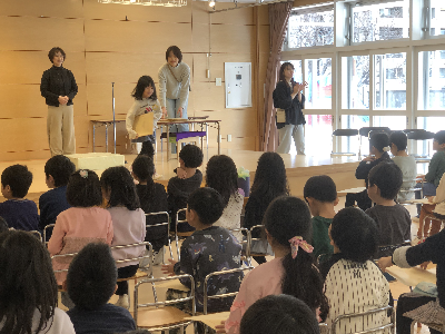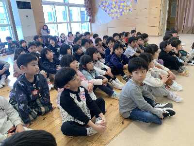 給食後には毎年恒例の特別な絵本を園長先生に読み聞かせてもらいました。