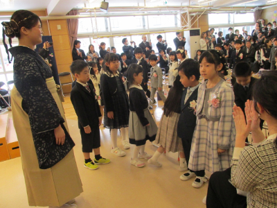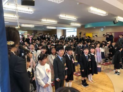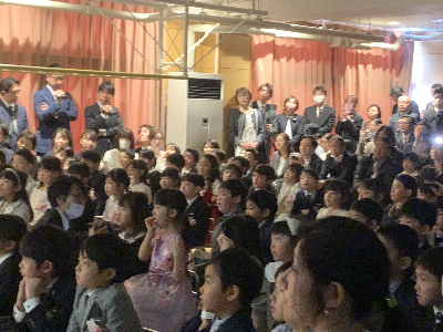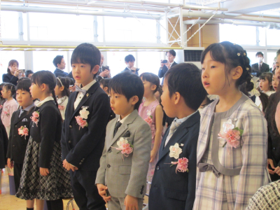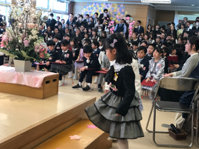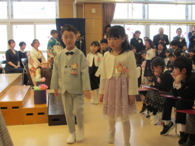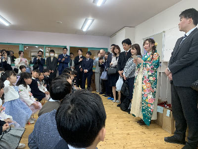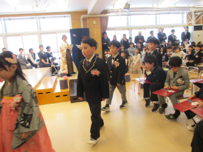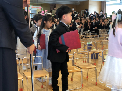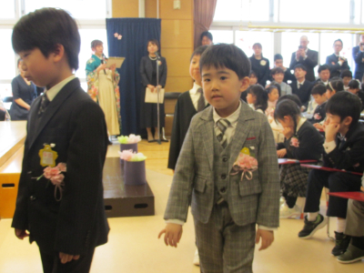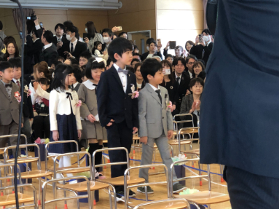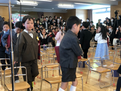 友達と間隔をあけて、隣の友達と息を合わせて、立派に入場していましたね。