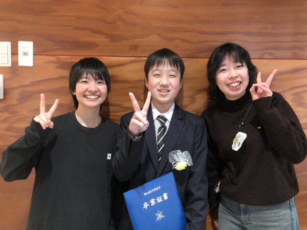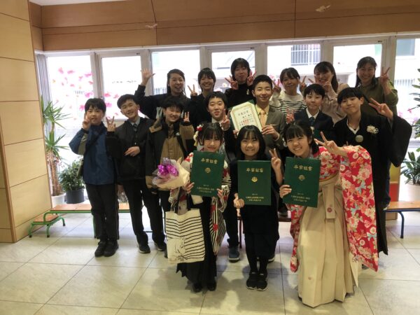 卒業式の日に報告に来てくれるのは毎年の光景です。