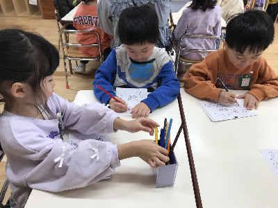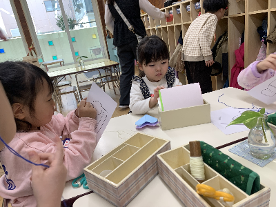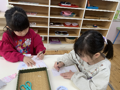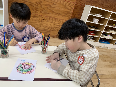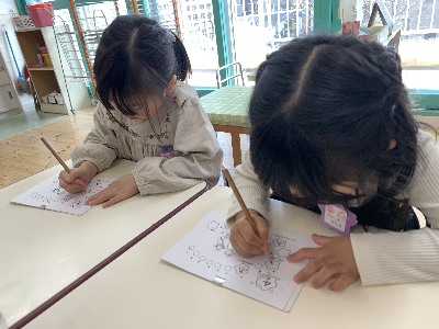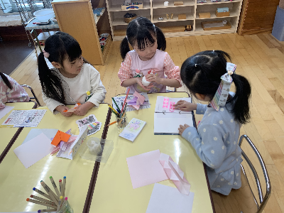 保育室では絵を描く活動や折り紙も変わらず大人気!