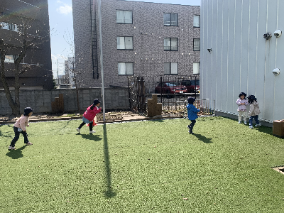 まずは春の園庭の気持ちよさを肌で感じ、そこから春の発見を目や鼻、音など五感を使って感じてほしいなと思います。