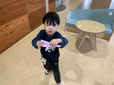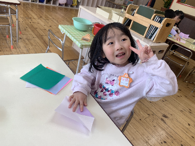 ポプラさんになった友達は早速難しい面体という作品を折り進め、得意げな姿も見せていました。