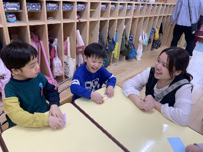 新しい環境にドキドキする気持ちを受け止め、子どもたちのペースに寄り添いながらも先生たちのプロとしてのテクニックをふんだんに使って安心してもらえるように頑張っていきますね。