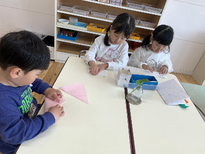 「カメを作ってみたいな~」と気持ちを伝えてくれた友達もいました。