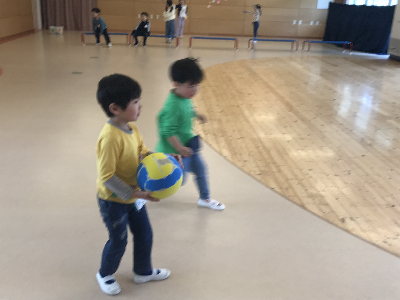 遠くにボールを投げたり、一生懸命に走ったり…。