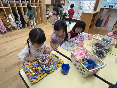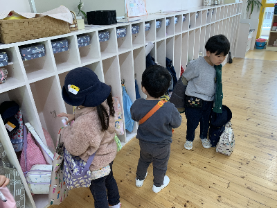 泣いて登園する友達も数人いましたが、玄関に入って先生に会うと安心してくれるのかすぐ泣き止んでくれています。