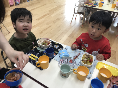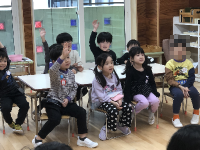 先生たちのお楽しみを興味津々に見てくれるみんなでした。