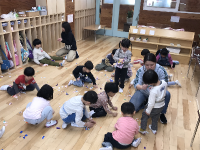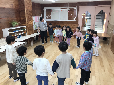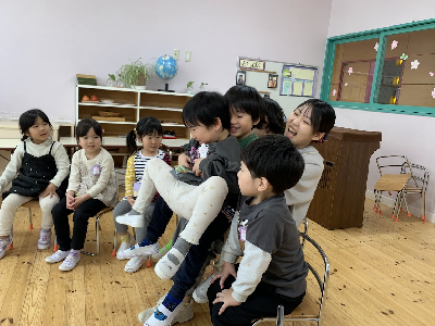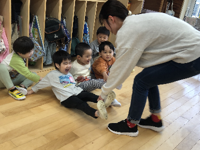 「ちょっと疲れてきてるから盛り上がる遊びにしよう」「スキンシップをとれる遊びがいいかも」「季節を感じてほしいな~」等いろいろと考えての準備です。